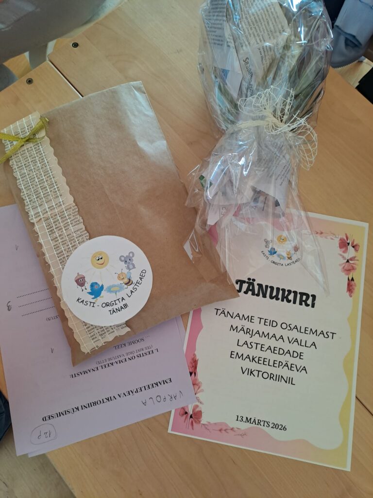 Käisime Märjamaa valla lasteaedade emakeele mälumängul, 13.märtsil, Kasti – Orgita lasteaias. Mälumängust võttis osa 7 lasteaia gruppi, meeskonnas 6 last. Küsimused Eesti kohta ja üldarendavad teadmised. Esikoht selgitati lisaküsimusega, tasavägine võistlus oli. Kaotajaid polnud, kõik said auhinna ja uusi teadmisi. Meeleolu loomiseks ja üksteisega paremini tutvuda tantsiti ja mängiti koos.
